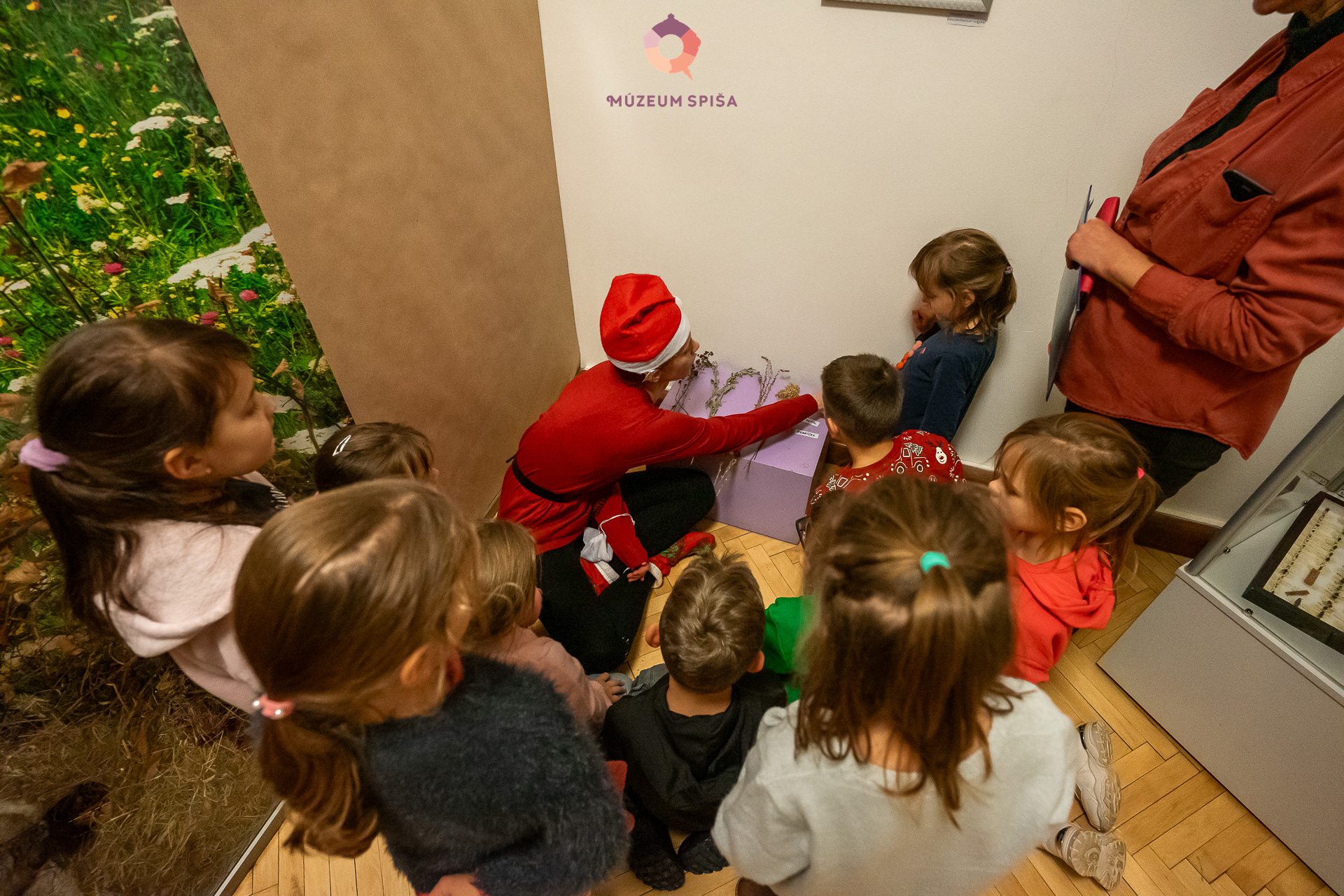 Vianoce s elfom Pre najmenších sme si pripravili zábavnú prehliadku dočasnej prírodovednej expozície, pri ktorej deti spolu s elfom hľadali stratené vianočné darčeky.